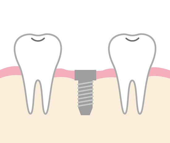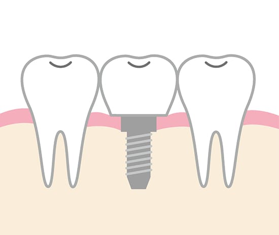 骨に結合したインプラントの上部には、かぶせ物をして食べ物を噛めるようになります。入れ歯やブリッジより丈夫で、元の歯と遜色のないほどに自然な歯を手に入れられるため、治療目的でインプラント治療を選択する方が多くいらっしゃいます。